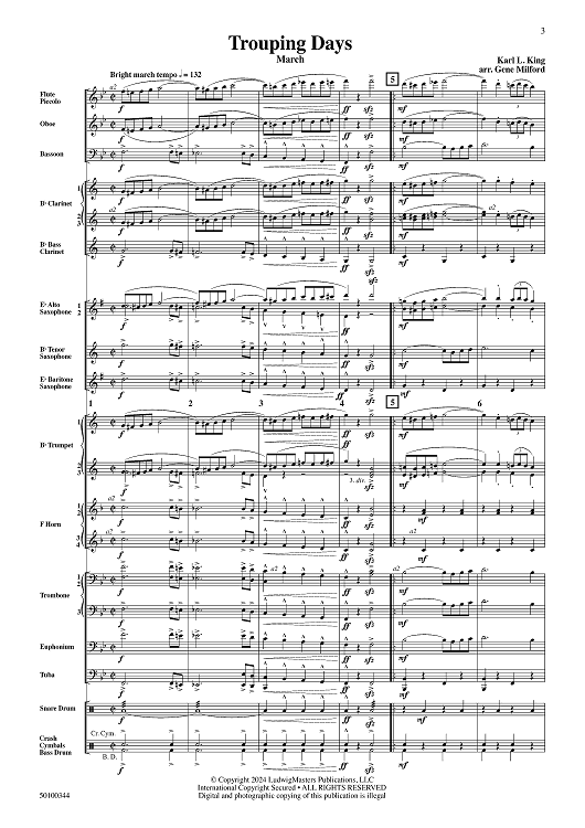 Digital Sheet Music for Trouping Days - Full Score by Gene Milford, Karl King scored for Concert Band; id:504570