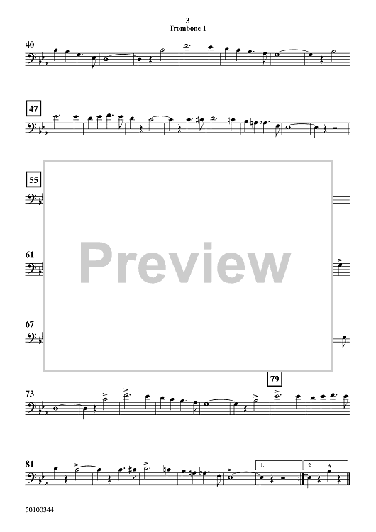 Digital Sheet Music for Trouping Days - Trombone 1 by Gene Milford, Karl King scored for Concert Band; id:504589
