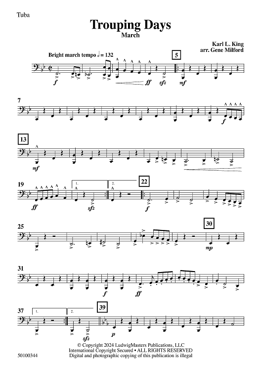 Digital Sheet Music for Trouping Days - Tuba by Gene Milford, Karl King scored for Concert Band; id:504593