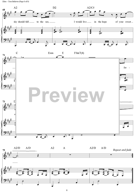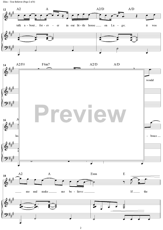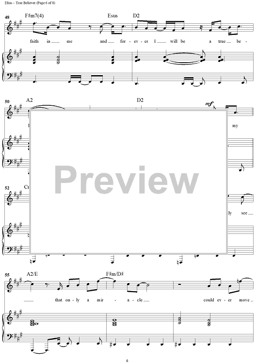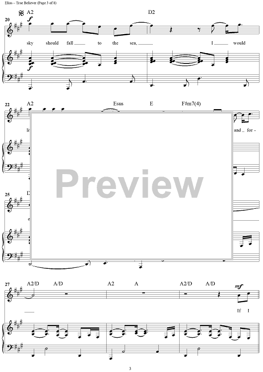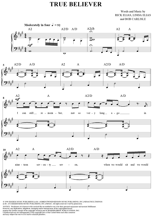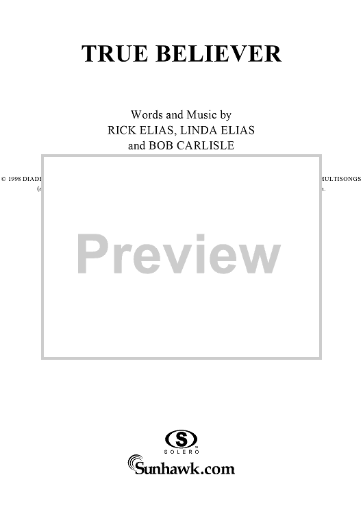 Digital Sheet Music for True Believer by Bob Carlisle, Linda Elias, Rick Elias scored for Piano/Vocal/Chords; id:270137