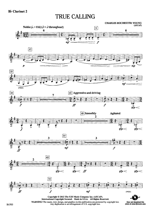 "True Calling - Bb Clarinet 2" Sheet Music by Charles Rochester Young