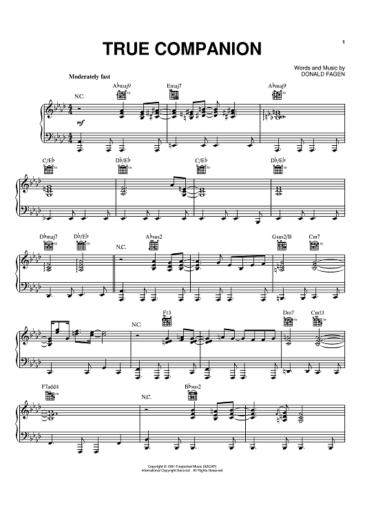 Digital Sheet Music for True Companion by Steely Dan, Donald Fagen scored for Piano/Vocal/Chords; id:390661