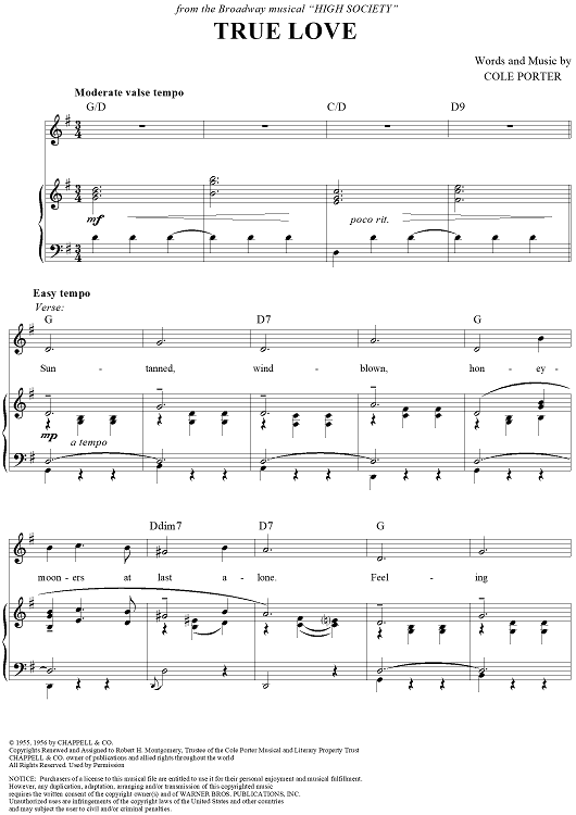 Digital Sheet Music for True Love by Cole Porter scored for Piano/Vocal/Chords; id:254442