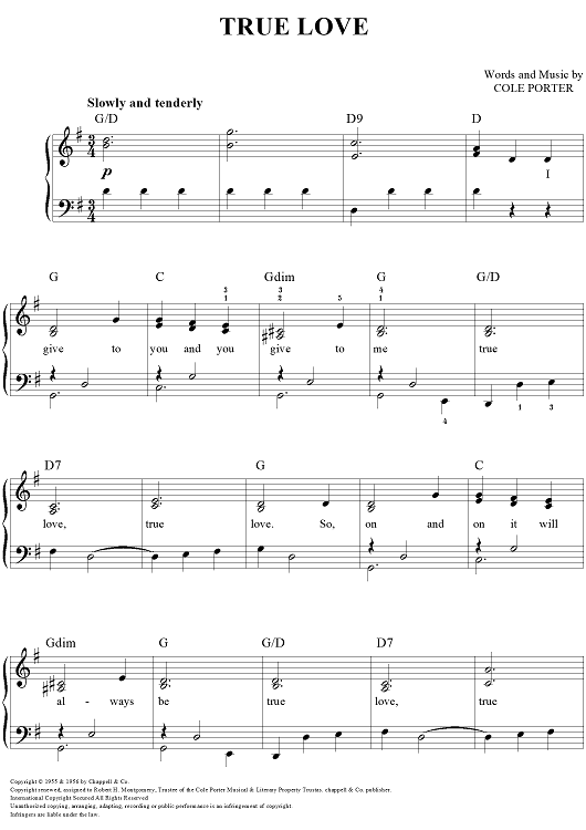 Digital Sheet Music for True Love by Cole Porter scored for Easy Piano/Vocal/Chords; id:433072