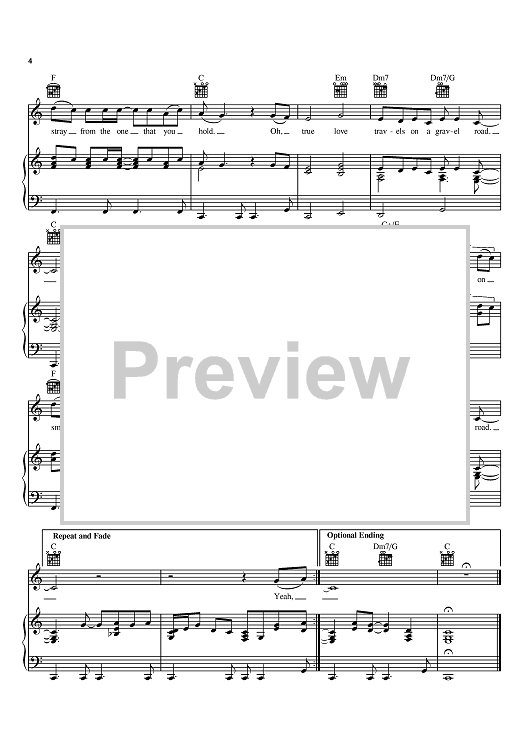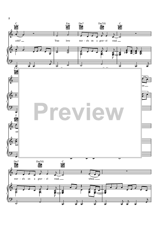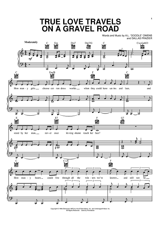 Digital Sheet Music for True Love Travels On A Gravel Road by Elvis Presley, Dallas Frazier, A.L. "Doodle" Owens scored for Piano/Vocal/Chords; id:370234
