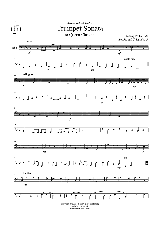 Digital Sheet Music for Trumpet Sonata - Tuba by Arcangelo Corelli, Joseph S. Kaminski scored for Brass Quintet; id:410551