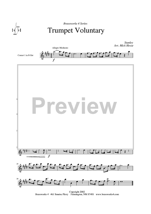 Digital Sheet Music for Trumpet Voluntary - Cornet 1/Trumpet 1 by John Stanley, Mick Hesse scored for Brass Quartet; id:316788