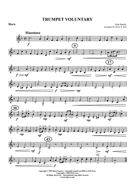 "Trumpet Voluntary - Horn in F (plus optional part for Trombone)" Sheet Music by John Stanley