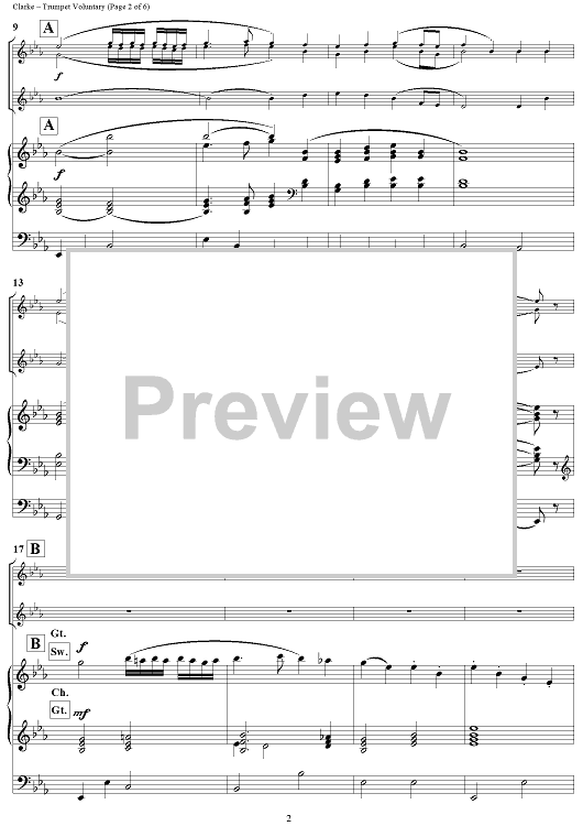 "Trumpet Voluntary - Organ Score" Sheet Music by Jeremiah Clarke