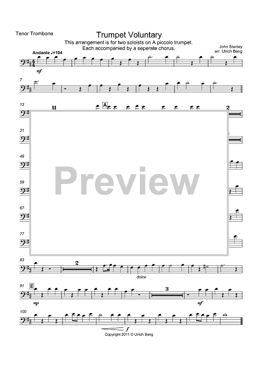 "Trumpet Voluntary - Tenor Trombone" Sheet Music by John Stanley