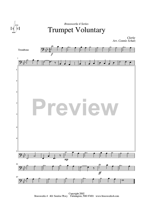 Digital Sheet Music for Trumpet Voluntary - Trombone by Jeremiah Clarke, Connie Schulz scored for Brass Quartet; id:316776