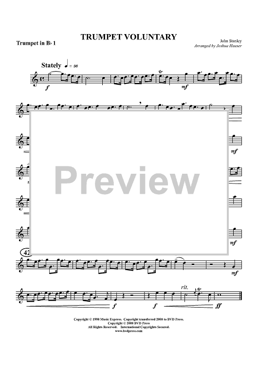 "Trumpet Voluntary - Trumpet 1" Sheet Music by John Stanley