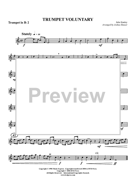 "Trumpet Voluntary - Trumpet 2" Sheet Music by John Stanley