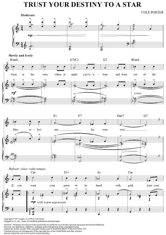 Digital Sheet Music for Trust Your Destiny To A Star by Cole Porter scored for Piano/Vocal/Chords; id:320761