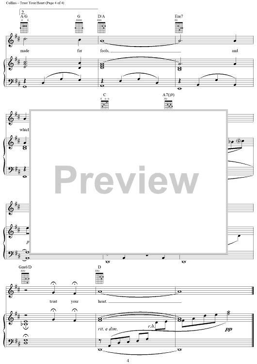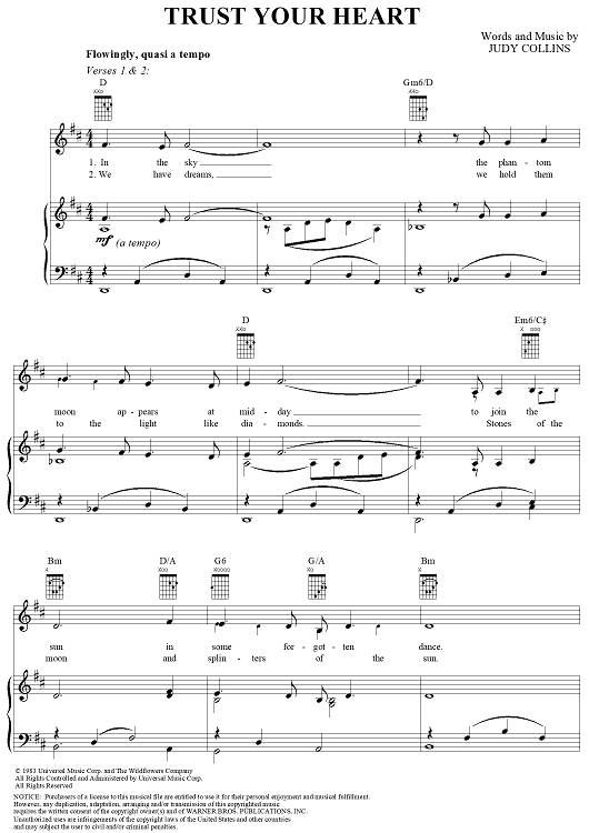 Digital Sheet Music for Trust Your Heart by Judy Collins scored for Piano/Vocal/Chords; id:286006