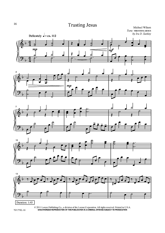 Digital Sheet Music for Trusting Jesus by Ira D. Sankey, Michael Wilson scored for Piano Solo; id:433649