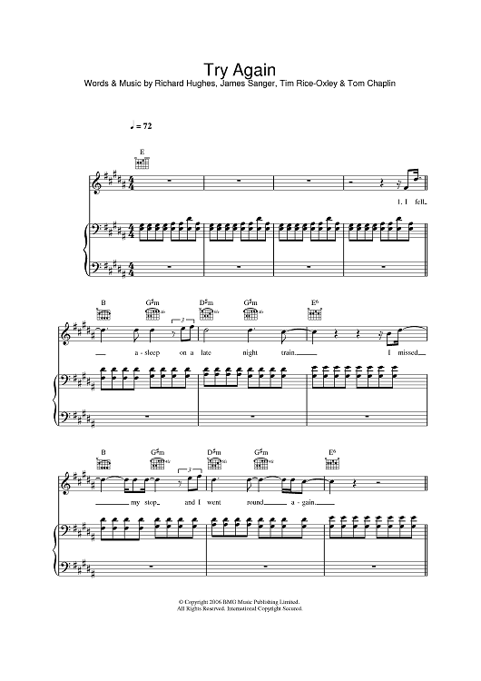Digital Sheet Music for Try Again by Keane, Tim Rice-Oxley, Tom Chaplin, Richard David Hughes, James Sanger scored for Piano/Vocal/Chords; id:391183