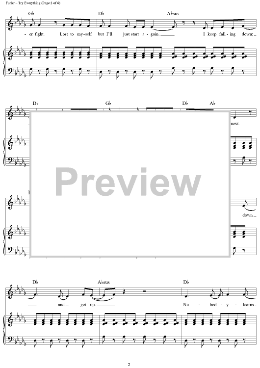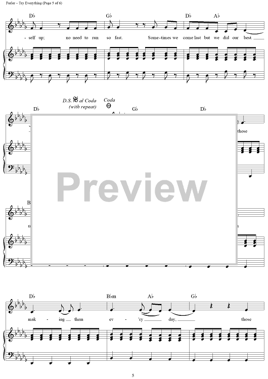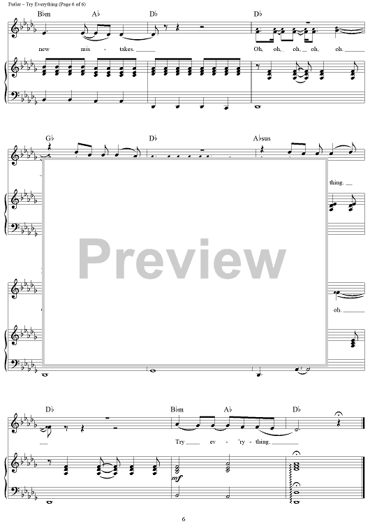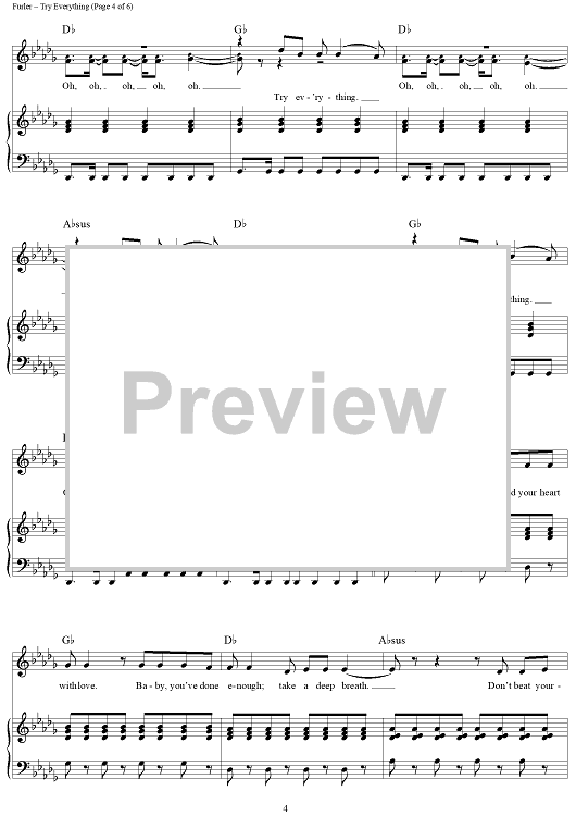 Digital Sheet Music for Try Everything by Shakira, Tor Erik Hermansen, Sia Furler, Mikkel Eriksen scored for Piano/Vocal/Chords; id:458963