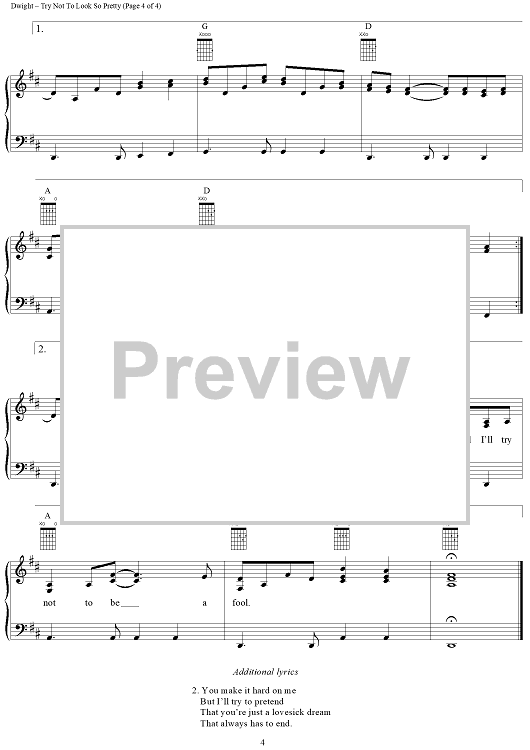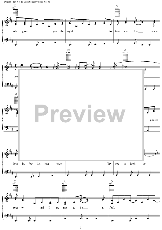 "Try Not To Look So Pretty" Sheet Music by Dwight David Yoakam
