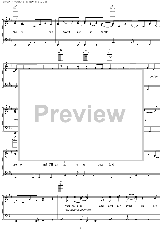 Digital Sheet Music for Try Not To Look So Pretty by Kostas, Dwight Yoakam scored for Piano/Vocal/Chords; id:262795