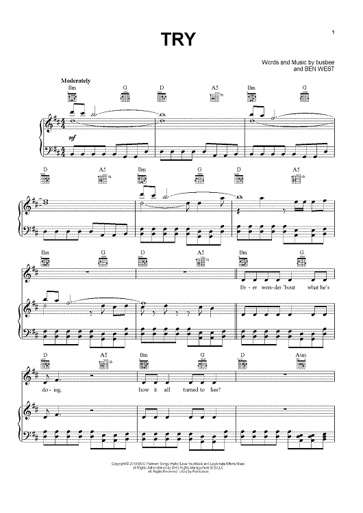 Digital Sheet Music for Try by Busbee, Pink, Ben West scored for Piano/Vocal/Chords; id:433451