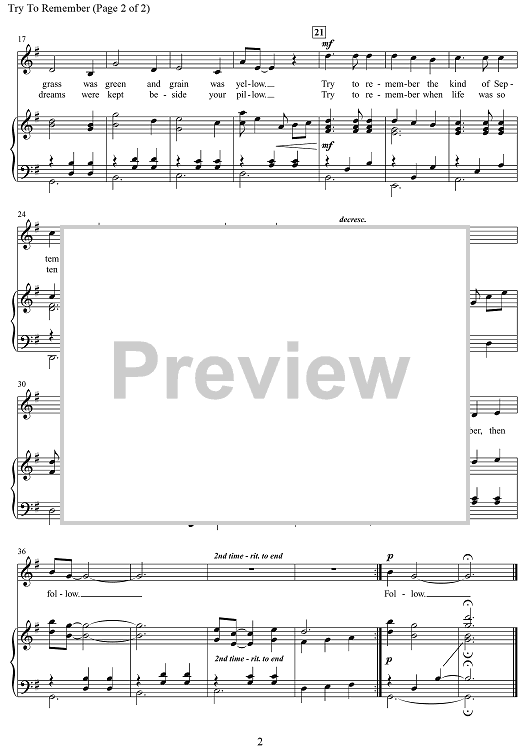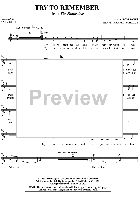 "Try to Remember (from "The Fantasticks")" Sheet Music by Harvey Schmidt