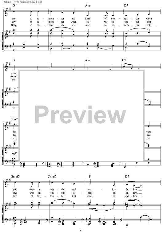 "Try to Remember" Sheet Music by Harvey Schmidt