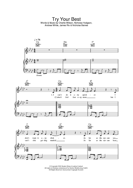 Digital Sheet Music for Try Your Best by Nick Baines, Nick Hodgson, Kaiser Chiefs, Simon Rix, Andrew White, Charlie Wilson scored for Piano/Vocal/Chords; id:397043