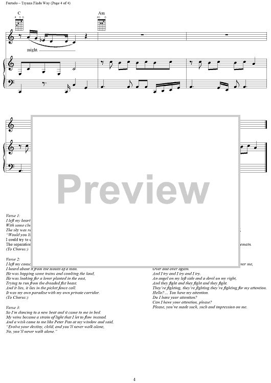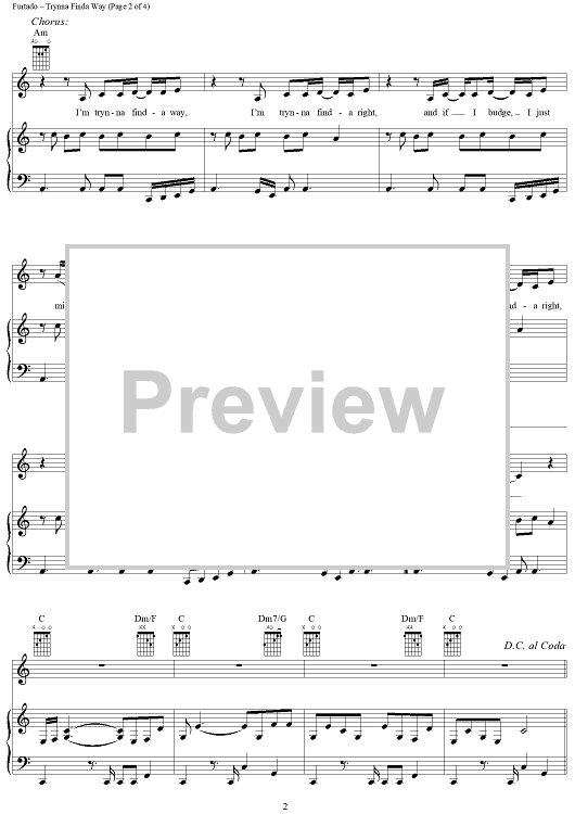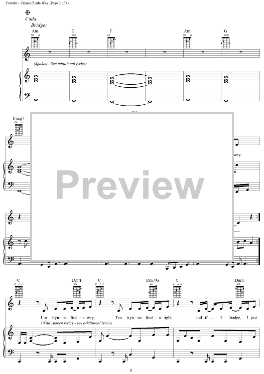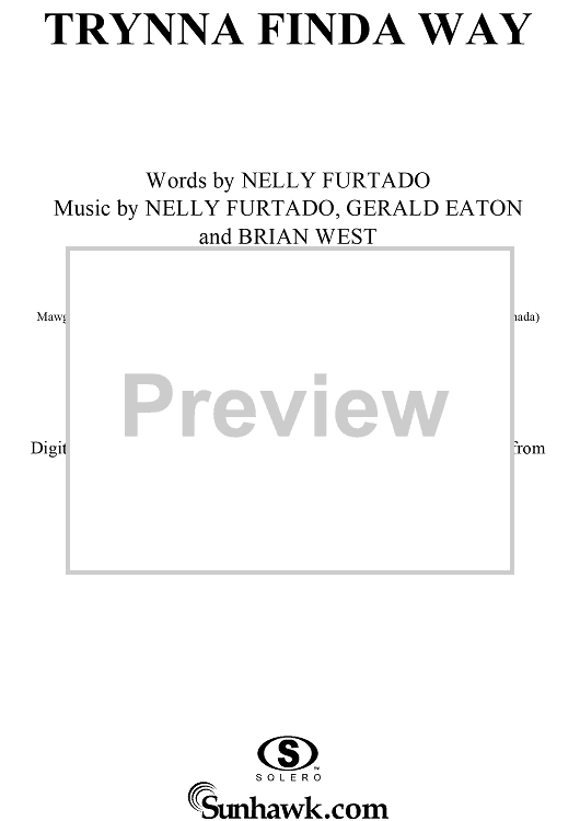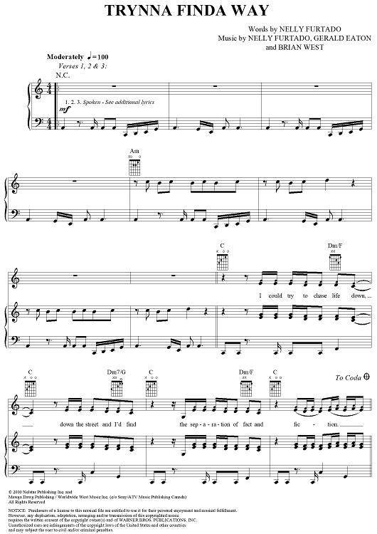 Digital Sheet Music for Trynna Finda Way by Nelly Furtado, Gerald Eaton, Brian West scored for Piano/Vocal/Chords; id:286608