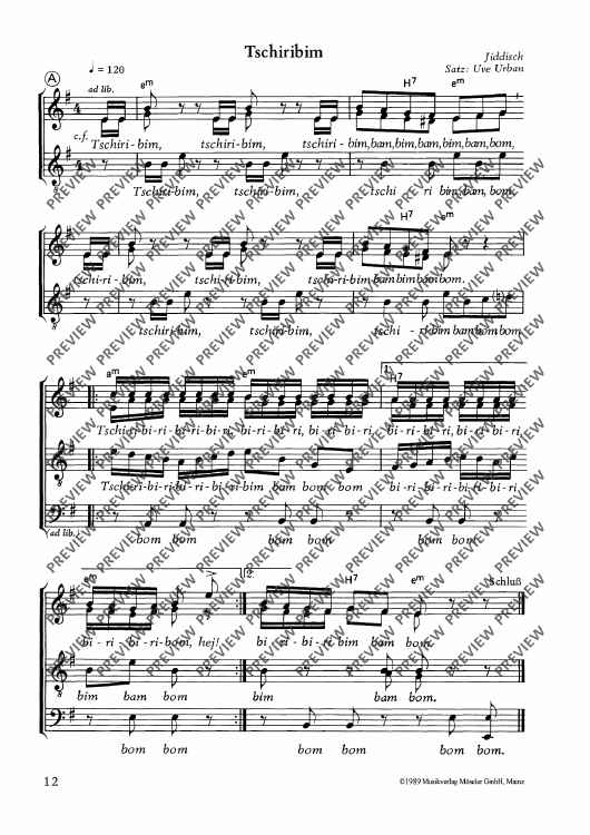 Digital Sheet Music for Tschiribim by Uve Urban scored for Mixed Choir (satb) A Cappella; Instruments Ad Libitum; id:500211