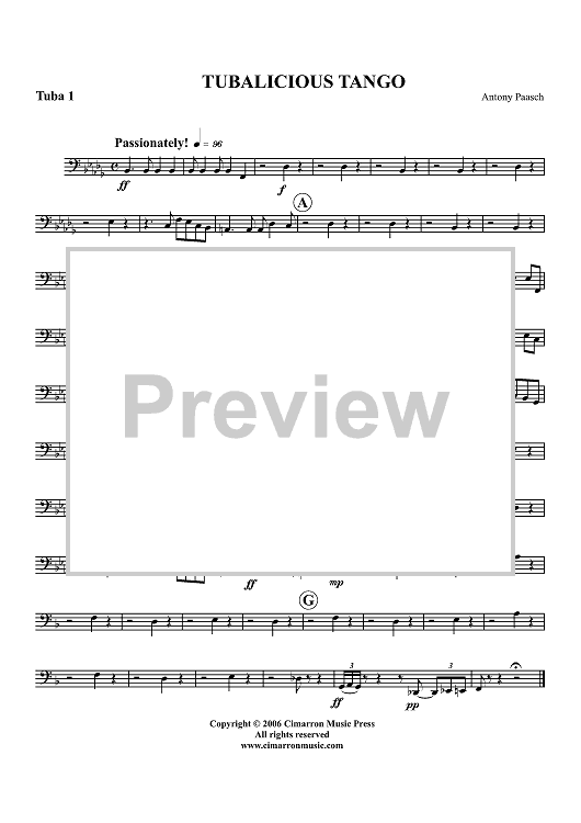 "Tubalicious Tango - Tuba 1" Sheet Music by Antony Paasch