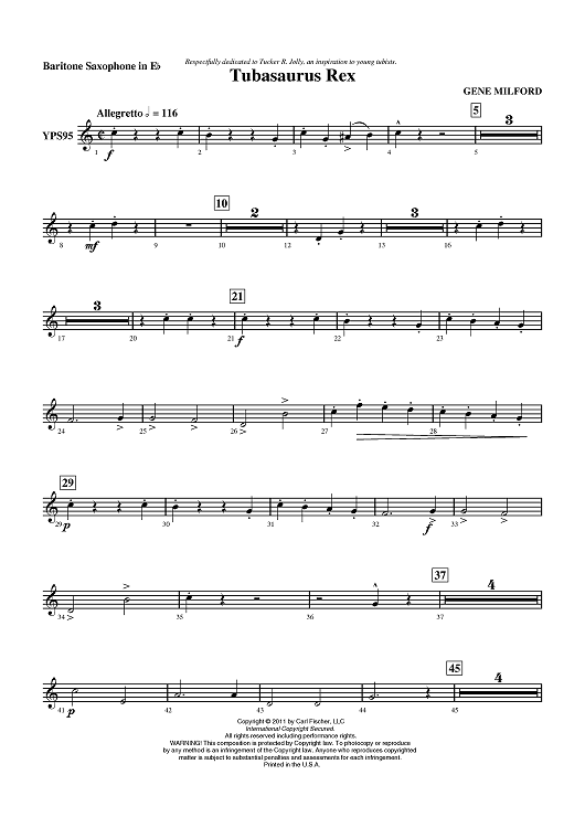 "Tubasaurus Rex - Baritone Sax" Sheet Music by Gene Milford