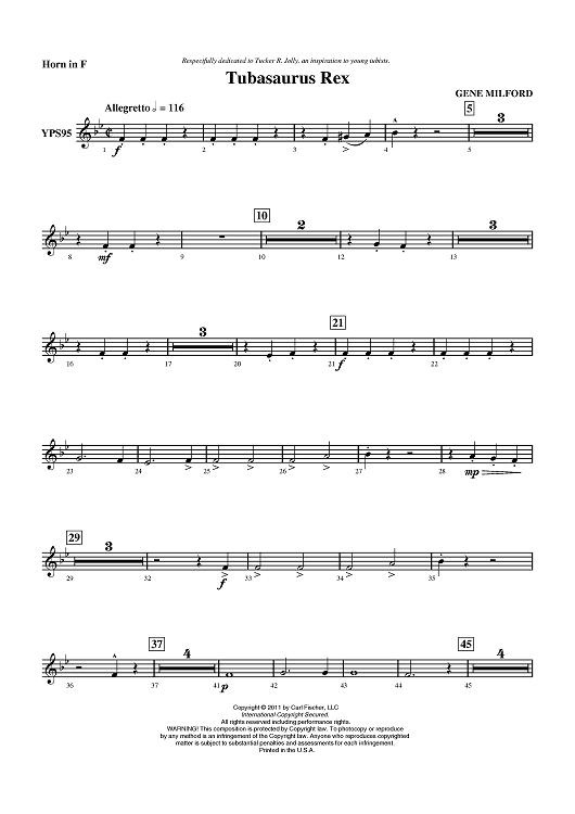 "Tubasaurus Rex - Horn in F" Sheet Music by Gene Milford