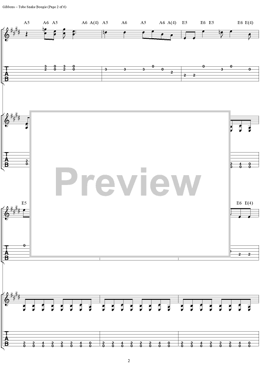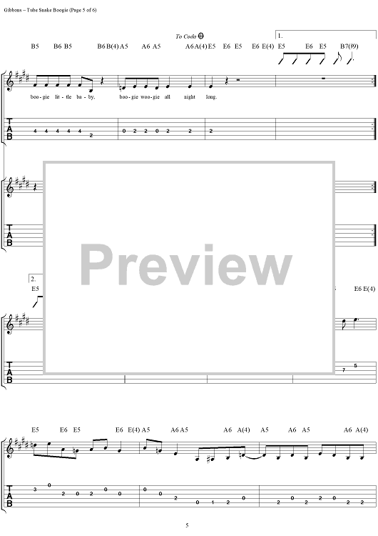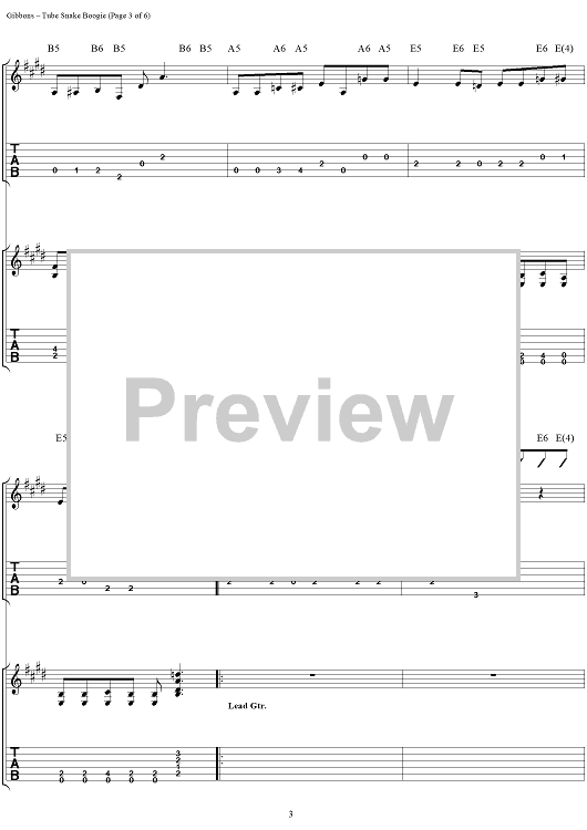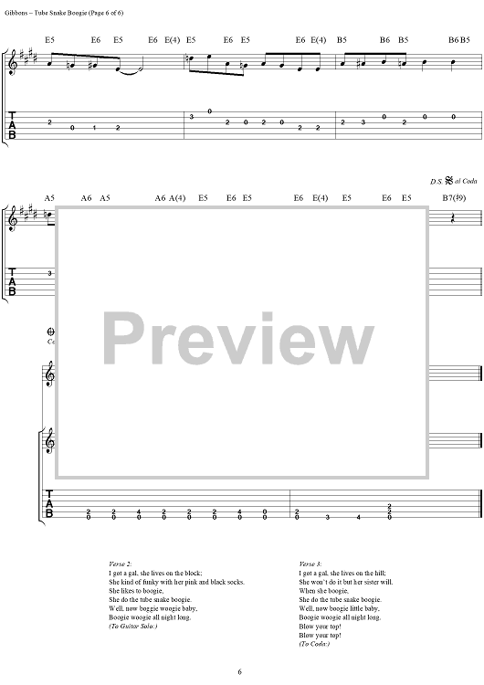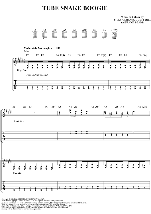 "Tube Snake Boogie" Sheet Music by ZZ Top