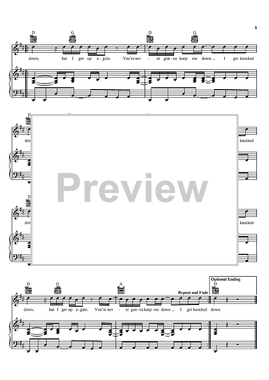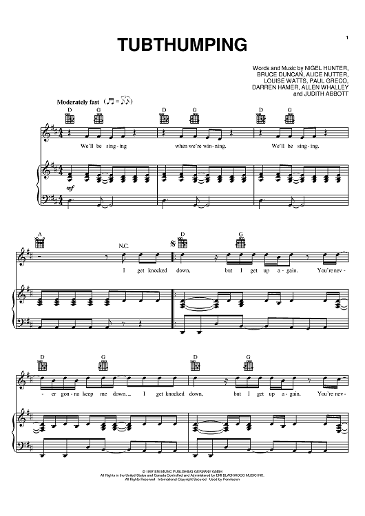 Digital Sheet Music for Tubthumping by Chumbawamba, Bruce Duncan, Nigel Hunter, Alice Nutter scored for Piano/Vocal/Chords; id:371030