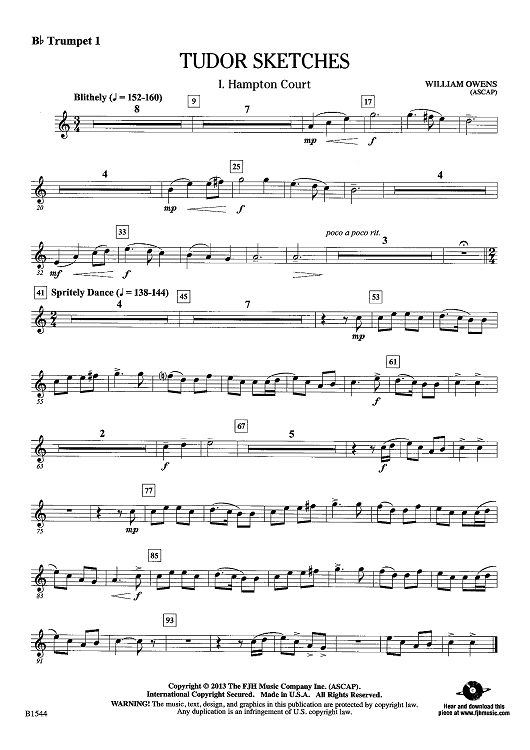 "Tudor Sketches - Bb Trumpet 1" Sheet Music by William Owens