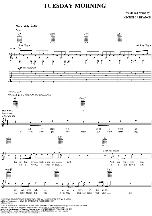 "Tuesday Morning" Sheet Music by Michelle Branch