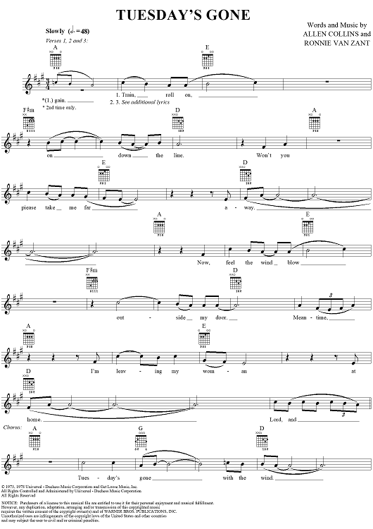 "Tuesday's Gone" Sheet Music by Lynyrd Skynyrd
