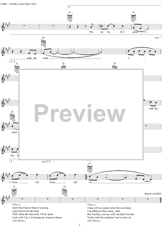 Digital Sheet Music for Tuesday's Gone by Lynyrd Skynyrd, Allen Collins, Ronnie Van Zant scored for Easy Guitar/Vocal; id:283515