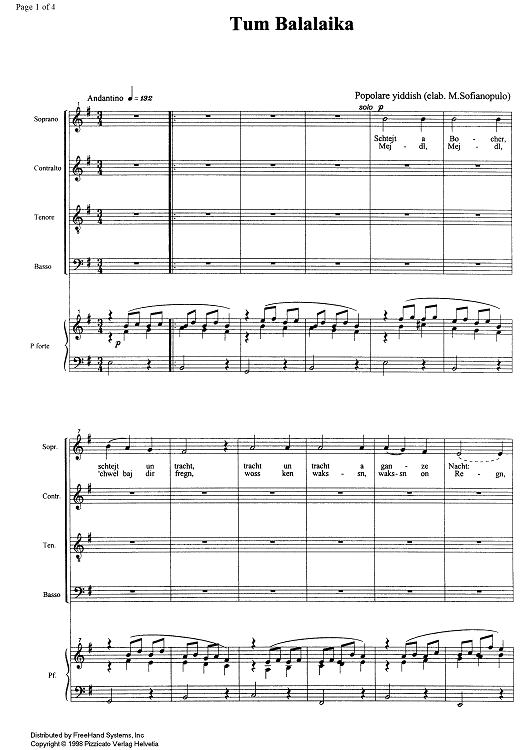 Digital Sheet Music for Tum Balalaika by , Marco Sofianopulo, Traditional scored for Choir/Piano; id:328861