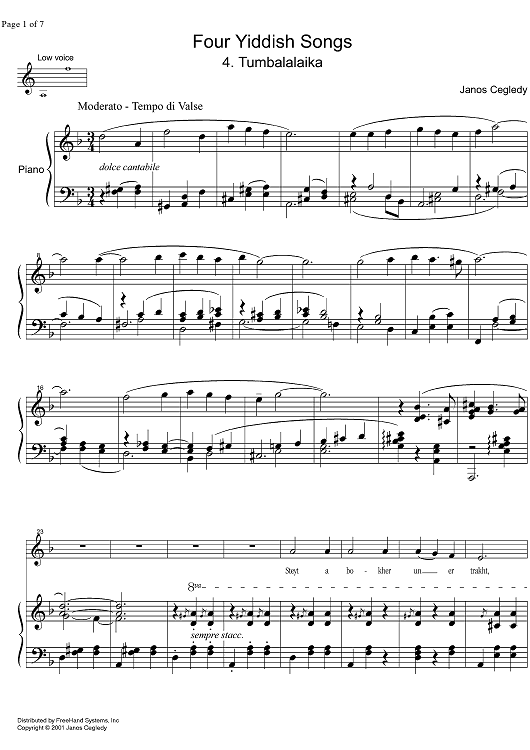 Digital Sheet Music for Tumbalalaika by , Janos Cegledy scored for Alto or Bass/Piano; id:337108