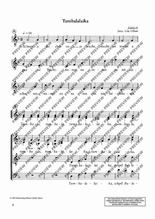 Digital Sheet Music for Tumbalalaika by Uve Urban scored for Mixed Choir (satb) A Cappella; Instruments Ad Libitum; id:500208