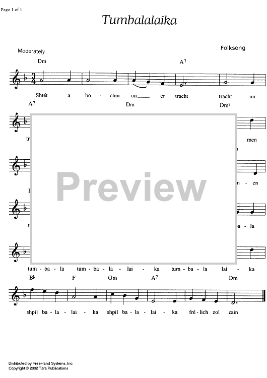 "Tumbalalaika - Score" Sheet Music by Traditional
