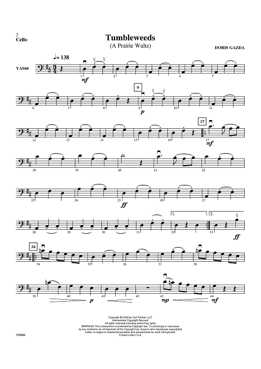 "Tumbleweeds - Cello" Sheet Music by Doris Gazda