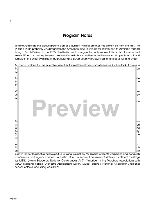 Digital Sheet Music for Tumbleweeds - Score by Doris Gazda scored for Orchestra; id:408362