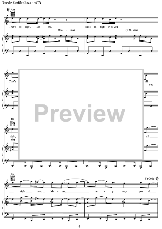 Digital Sheet Music for Tupelo Shuffle - from ELVIS by Arthur Crudup, Thomas Pentz, Khalif Brown, Maxime Picard, Clement Picard scored for Piano/Vocal/Chords; id:497477
