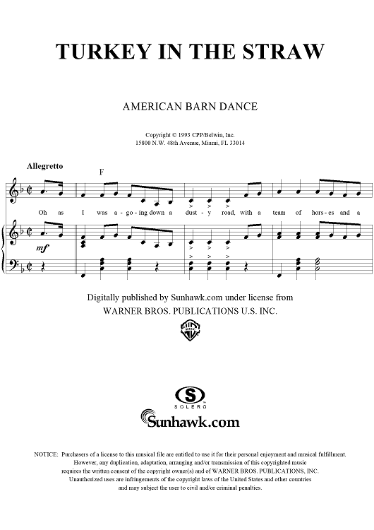 "Turkey in the Straw" Sheet Music by Traditional