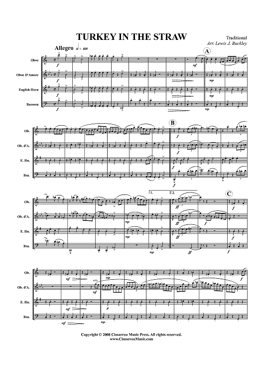 Digital Sheet Music for Turkey in the Straw - Score by Traditional, Lewis J. Buckley scored for Double Reed Quartet; id:414021