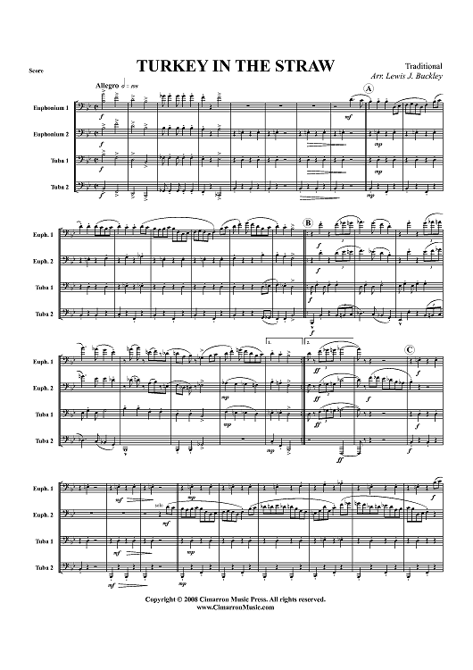 Digital Sheet Music for Turkey in the Straw - Score by Traditional, Lewis J. Buckley scored for Tuba Quartet; id:416027