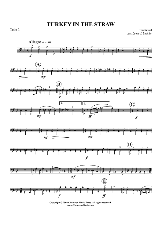 Digital Sheet Music for Turkey in the Straw - Tuba 1 by Traditional, Lewis J. Buckley scored for Tuba Quartet; id:416030